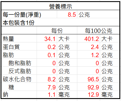 [萬聖節限定]白雪公主/壞女巫 – 蘋果棉花糖|營養成分