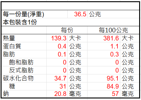 ※此營養標示依據台灣SGS報告數據所示,食品業者登錄字號:E-100624006-00000-0
