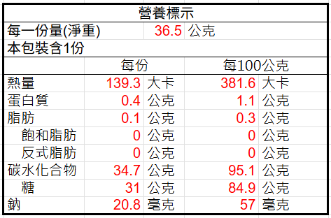 ※此營養標示依據台灣SGS報告數據所示,食品業者登錄字號:E-100624006-00000-0